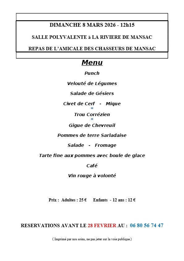 Ou par mail ; chasseamicale.mansac@gmail.com