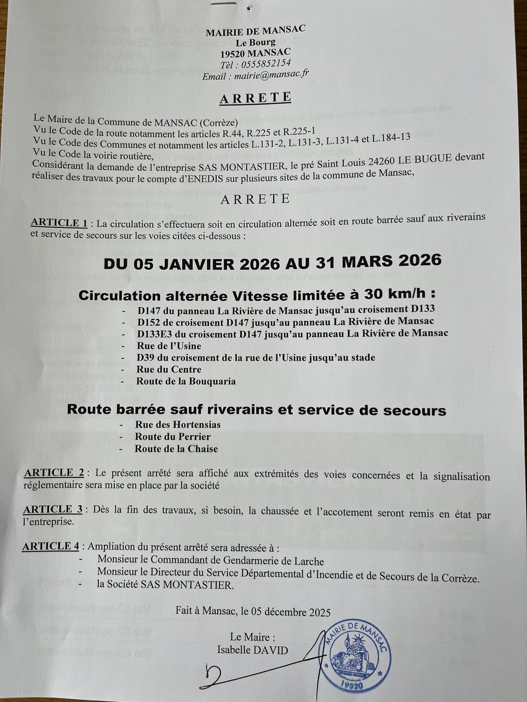 ENFOUISSEMENT DES LIGNES HAUTES TENSIONS PAR ENEDIS ROUTE DE MANSAC ET ROUTE DE LARCHE