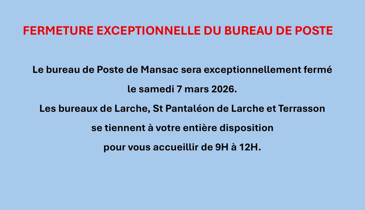 Fermeture exceptionnelle du bureau de Poste
