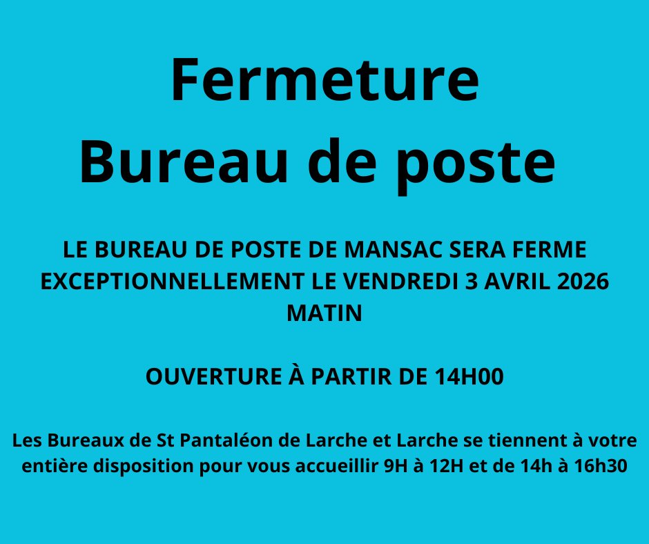 Fermeture exceptionnelle du bureau de Poste